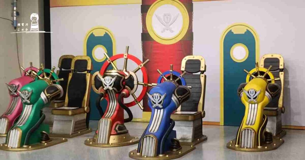 締めくくりは50周年にふさわしいスーパー戦隊歴代のヒーローたちのスーツがビシビシ展示されるエリア。変身アイテムや武器などもセットされているので作りこみや歴戦の着用感もじっくり見るのがおすすめです。奥の方のスーツはなかなか目が届きにくいのが悔しい感じ。