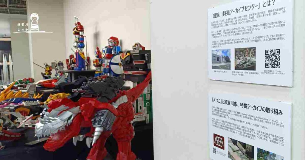 圧巻のロボットとメカを提供しているのはATACとわれらが須賀川特撮アーカイブセンターです。しっかり展示パネルにも情報が満載。これを機に足を運んでほしいですね~